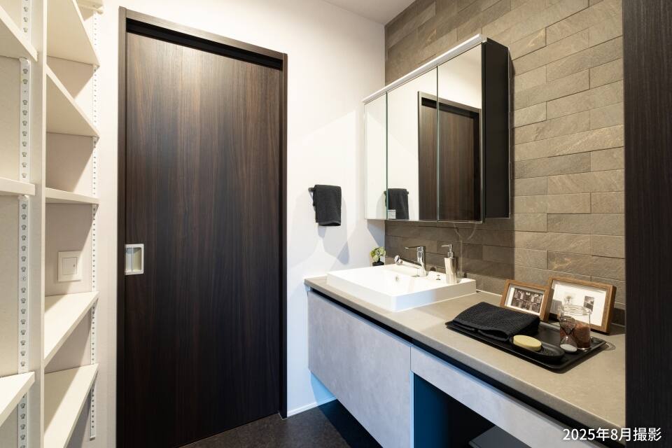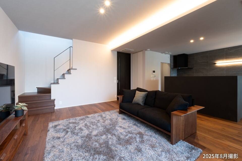 【30号地/外観】感性テーマは「艶」。重厚感とダイナミックさを表現。空間にゆとりや、ゆっくりとした時間の流れが感じられる住まいです。/2025年8月撮影