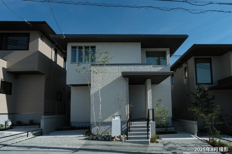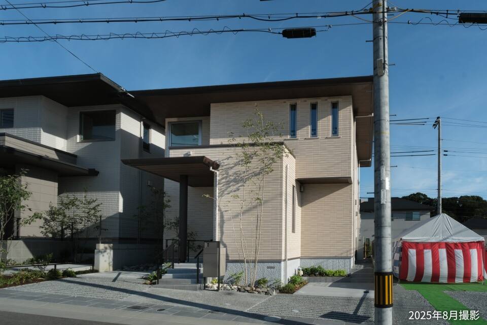 【34号地/外観】感性テーマは「優」。ずっと変わらない優しく穏やかな空気感。使い勝手がよく、誰もが暮らしたくなる穏やかな住まいです。/2025年8月撮影
