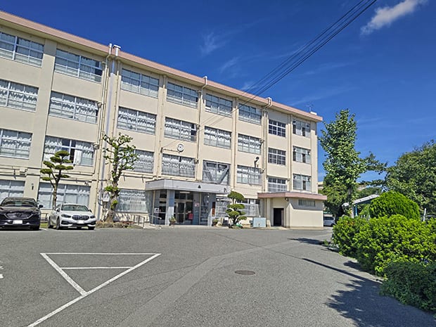 2025年4度の全校生徒数は592名です。地域と学校が協力して子育てをする活動を積極的に行っている学校です。 2026年4月撮影