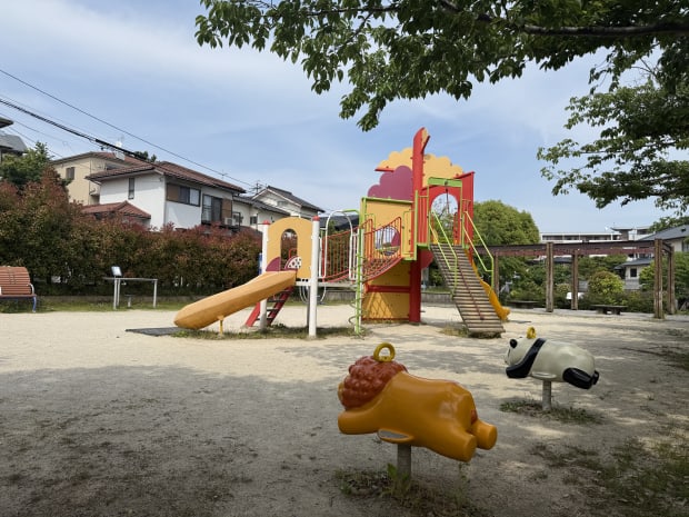 住宅地内にある閑静な公園です。この公園には池があり、ウォーキングコースが整備されています。2026年4月撮影