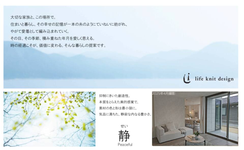- 新たなデザイン思想 「ライフ ニット デザイン」“感性”を住まいへと編み込み、暮らすほどに愛着が増していく「長く住み続けたい家」を。人生に豊かさを与えてくれる感性の器のような場所にもなりうる。