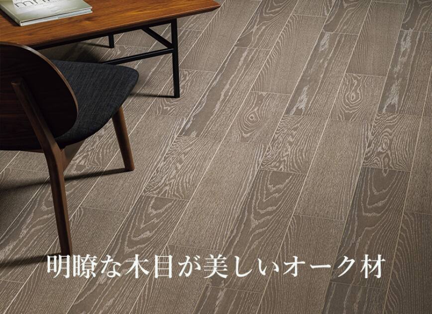 - 浮造り(うづくり)技法とは、刈萱(かるかや)の草の根を束ねた道具で、表面を何度もこすることで年輪を浮き立たせる日本の伝統技法。先進技術で再現した床材で木名の美しい凹凸はもちろん、際立つ美しい入り、艶、触れたときの心地良さも魅力の一つです。
