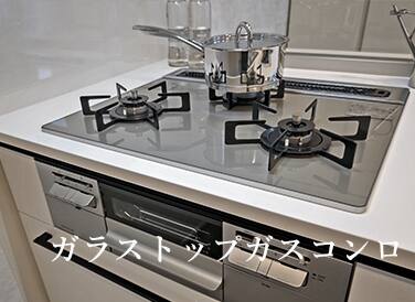 結晶化ガラストップでツヤと耐久性に優れる天板は光沢があり、高級感のある見た目。キッチンのインテリアに調和しやすく、スタイリッシュな印象を与えます。フラットなガラストップは、汚れがついても拭き取りやすい。グリル:水なし両面焼き(無水両面焼きグリル)、上下バーナー仕様で魚をひっくり返さずに焼けます。