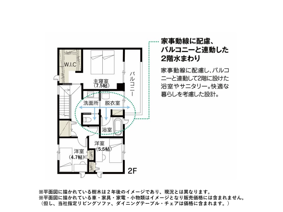 ※パースに描かれている車・家具・家電・小物類はイメージとなり販売価格には含まれません。(但し、当社指定リビングソファ・ダイニングテーブル・チェアは価格に含まれます。)