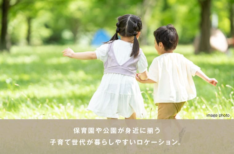 ![]() 簗下中央公園(徒歩約6分(最長)/約440m~約470m)など、自然に触れ合える公園が点在しているので、ご家族皆様で四季を楽しんだり、お子様と遊んだり、子育て世代におすすめの街です。毎日を豊かにしてくれるライフステージがここにあります。 |
