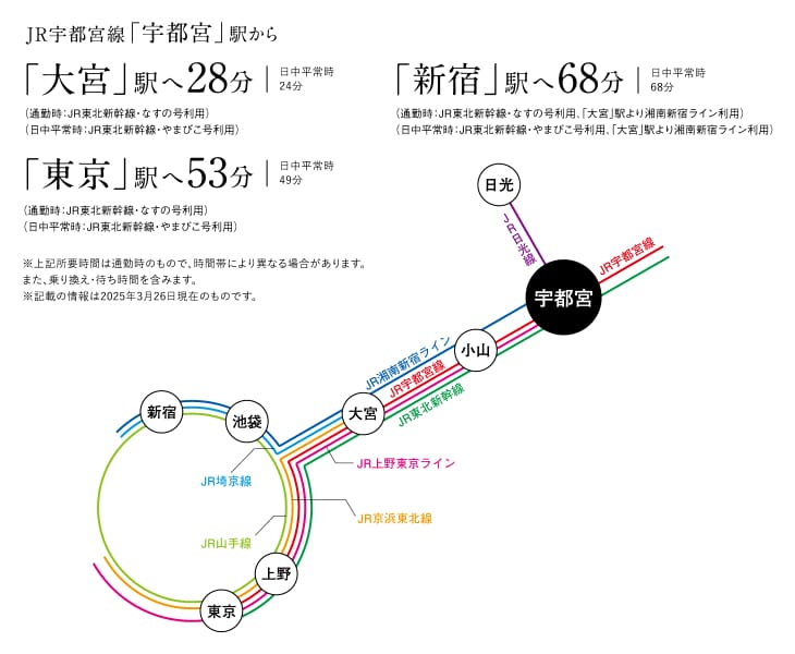 JR宇都宮駅は、新幹線や在来線7路線が発着し、都心へダイレクトにアクセスできます。