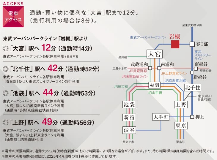 ![]() 大宮~春日部間のほぼ中心にあり急行が停車 するので、東西への移動に便利です。 |