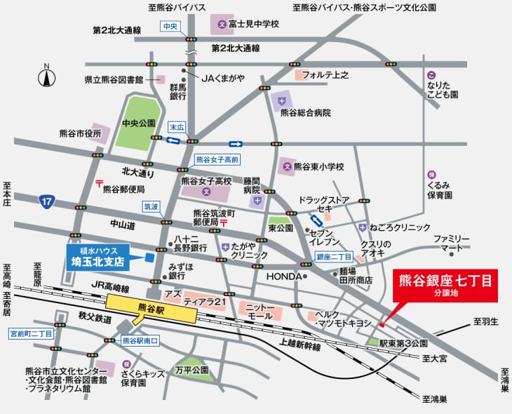 JR「熊谷」駅へ徒歩12分。上越新幹線利用で「東京」駅へ38分のスムーズアクセス。