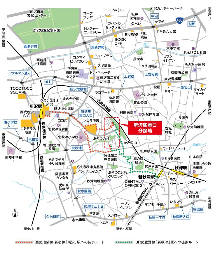 西武池袋線「所沢」駅(約1360m〜約1570m)から、「池袋」駅へ32分(朝の通勤時)でダイレクトアクセス。また、東京メトロ直通を利用すれば、有楽町方面や横浜方面へスムーズに移動できる便利な立地です。