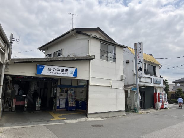 特徴ある駅名は、「日本三大名藤」の一つ、樹齢1000年超の天然記念物「牛島の藤」が由来です。