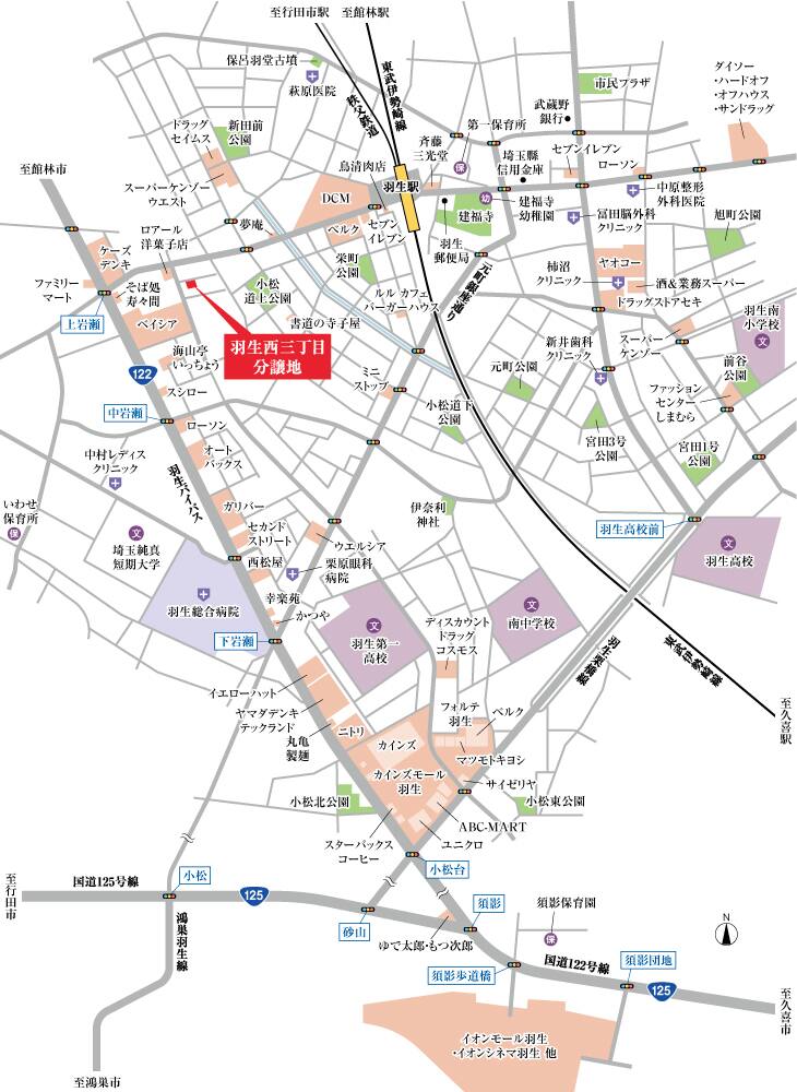国道122号線(羽生バイパス)や125号線などの幹線道路へのアクセスが良く、車での移動がスムーズです。