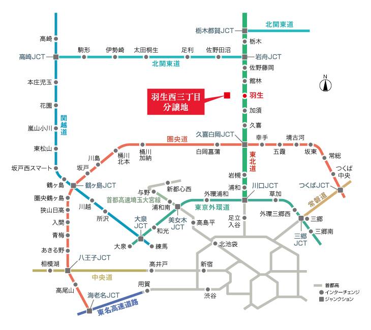 東北道「羽生IC」から圏央道や首都高、関越道、北関東道へのアクセスが良く、都心や観光地へ快適なカーライフを楽しめます。