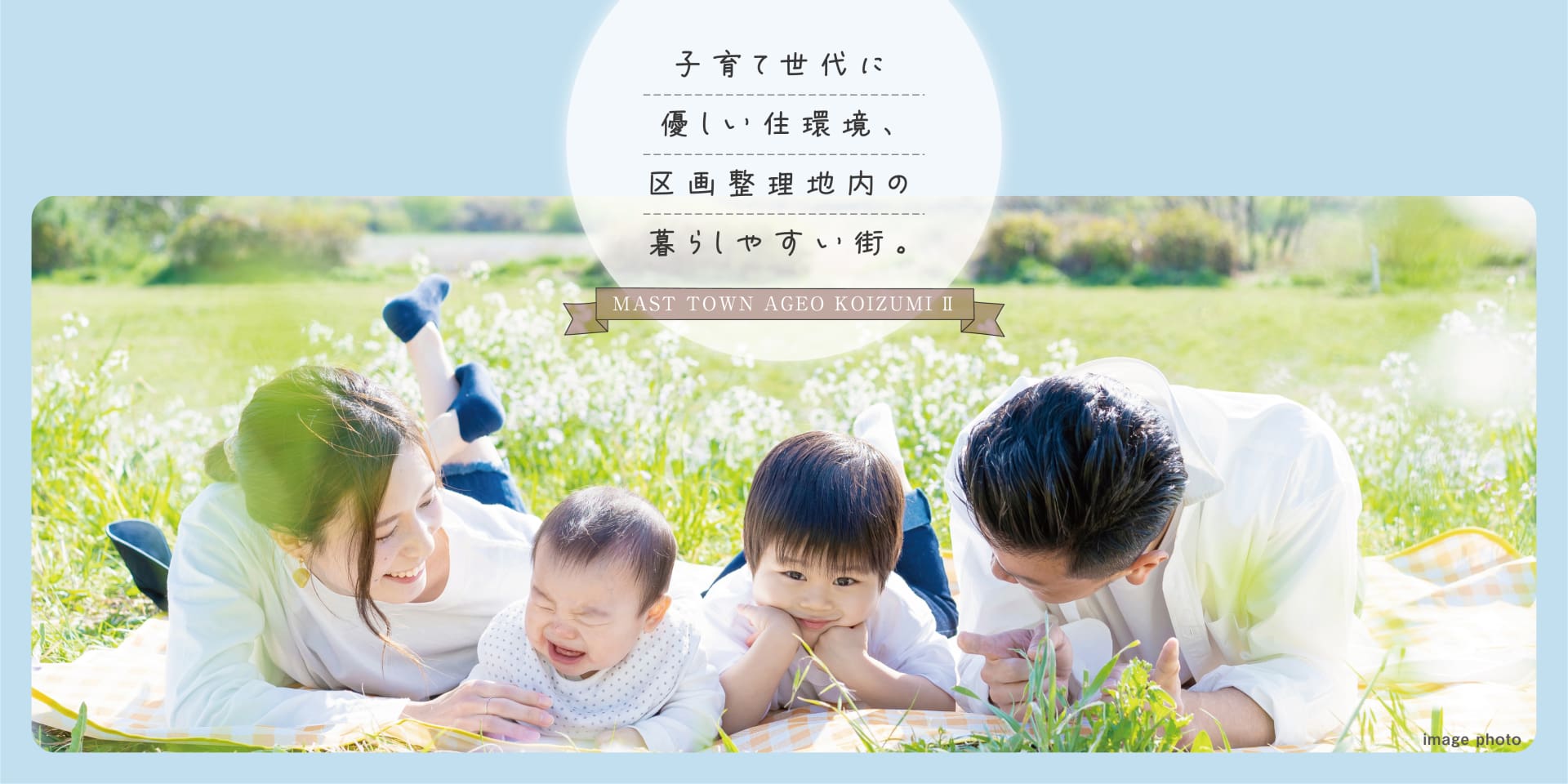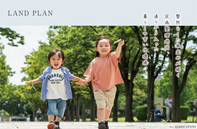 保育園や小中学校・公園などが近く、お買い物も便利な暮らしやすさが魅力の街。生活利便施設が整った閑静な街で、ゆとりある穏やかな暮らしをお届けします。