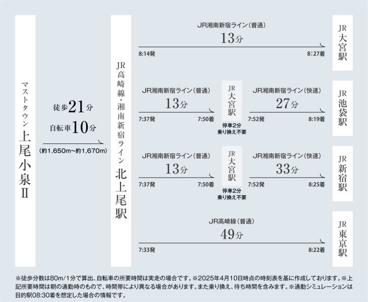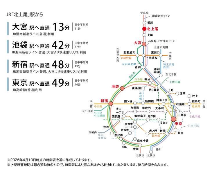 「北上尾」駅から池袋・新宿駅、東京・品川駅など都心の東西の主要駅へダイレクトにアクセスします。