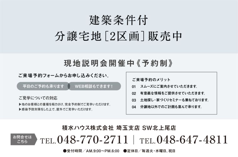 積水ハウス株式会社  埼玉支店定休日:火曜日、水曜日及び祝日 営業時間:9:00~18:00