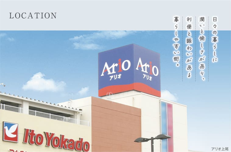 都心へのアクセスが良く、豊かな自然に恵まれた住環境。多彩な店が揃うショッピングモールも日常使いでき、毎日の暮らしも快適です。保育園や小中学校、公園などが近く、子育て中のご家族にうれしい環境が整っています。●アリオ上尾(約1900m〜約1920m)、●かたくり保育園(約230m〜約250m)、●大石小学校(約680m〜約700m)、●大石中学校(約830m〜約850m)、●浅間台大公園(約330m〜約350m)、●上尾丸山公園(約2970m〜約2990m)
