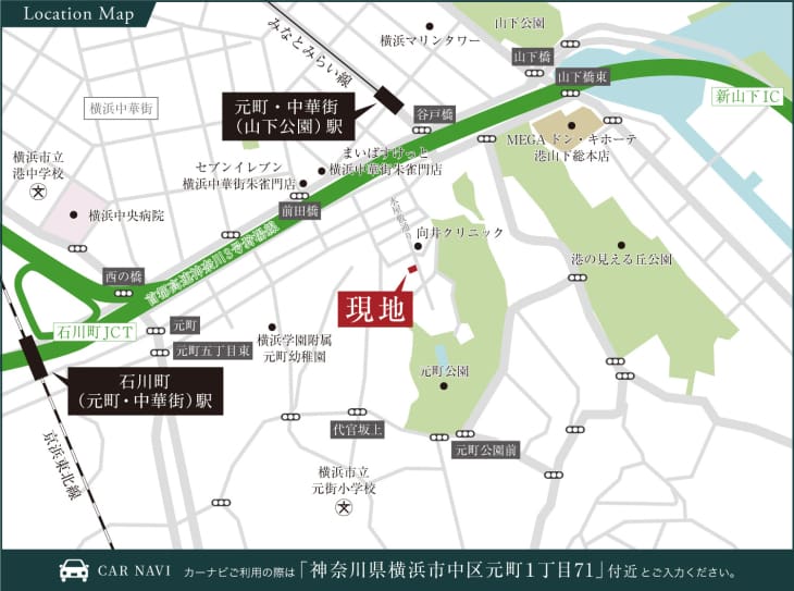 <横浜元町一丁目>分譲地は、この2つの駅の徒歩圏内に位置している利便性の高い立地です。