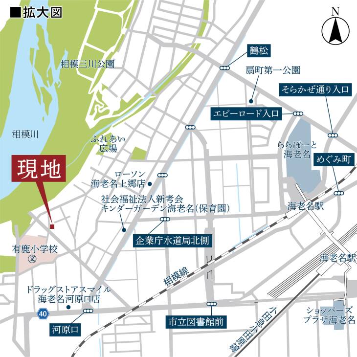 『海老名上郷一丁目』はJR相模線「海老名」駅(約1,100~1,140m)まで徒歩14~15分の分譲地です。