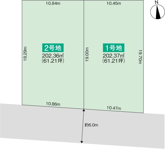 平屋の建築も可能な、全区画南向き60坪以上の閑静な住宅地