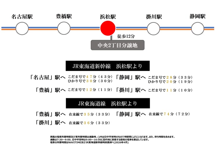 浜松駅まで徒歩12分。通勤・通学に便利な分譲地です。