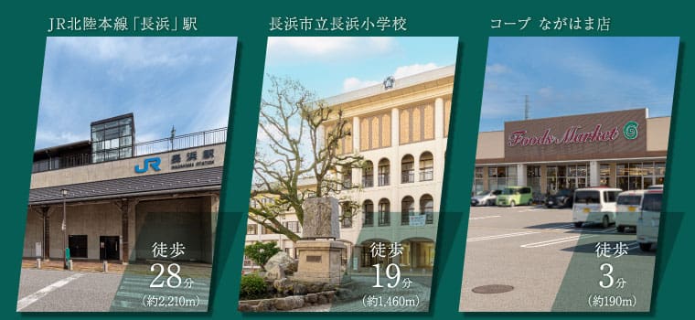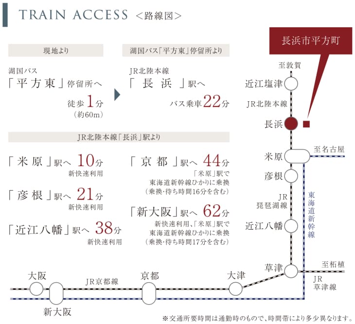 「長浜」駅から新快速利用で「米原」駅まで10分、「彦根」駅まで21分でダイレクトアクセスが叶います。