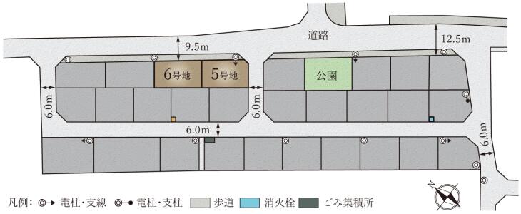 分譲地内道路の幅員は6m以上、車の入出庫やすれ違いがスムーズに行えます。