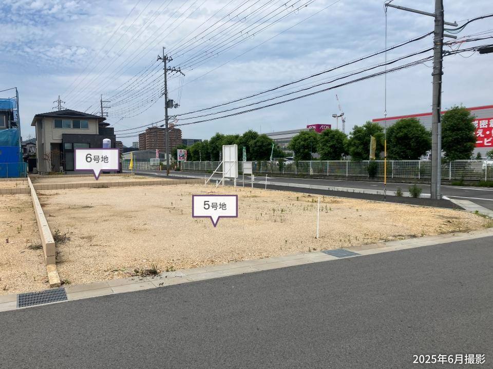 6号地は形が整っているため、敷地全体を有効活用しやすいです。隣家との間隔を保つことができるゆとりがあり、プライバシーに配慮した住まいづくりが可能です。/2025年6月撮影