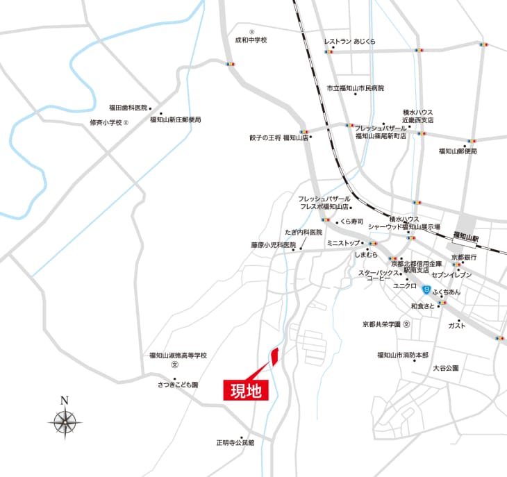 JR福知山線「福知山駅」まで徒歩約27分。他にも近隣には生活に便利な施設が点在しています。
