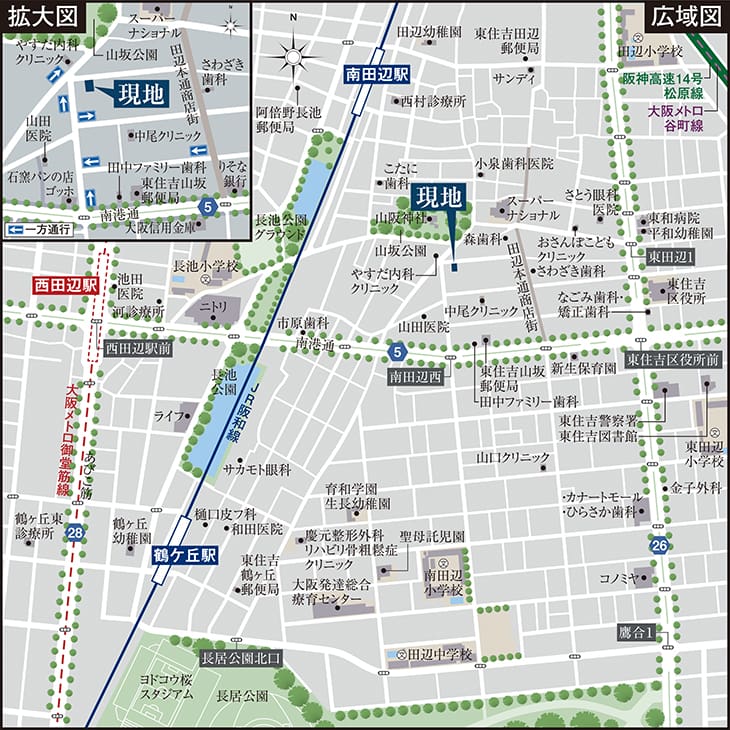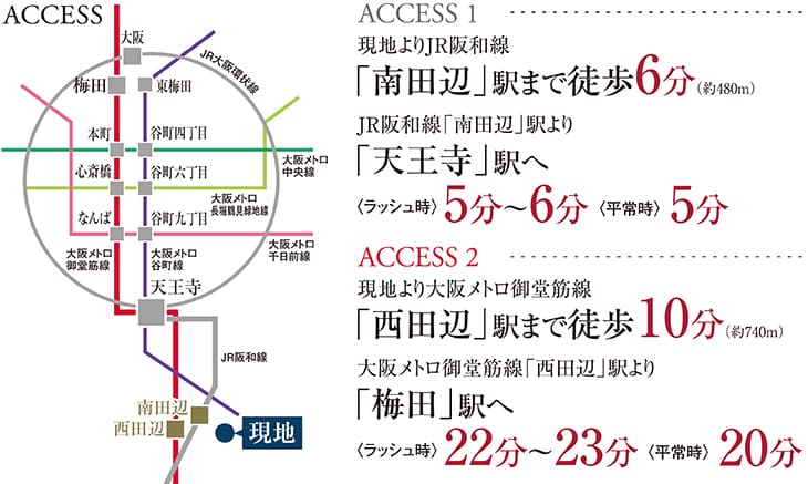 梅田や天王寺など都心へ2WAYでアクセスできる利便性。 長居公園も生活圏の教育や買い物、医療施設も整った街。