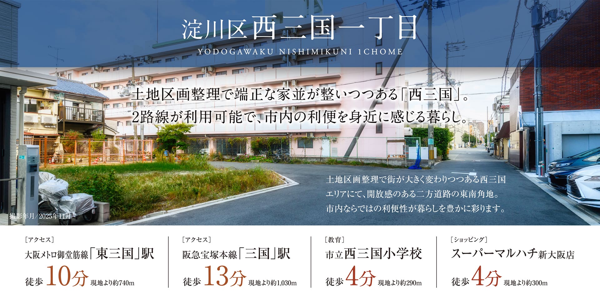 土地区画整理で端正な家並が整いつつある「西三国」。2路線が利用可能で、市内の利便を身近に感じる暮らし。