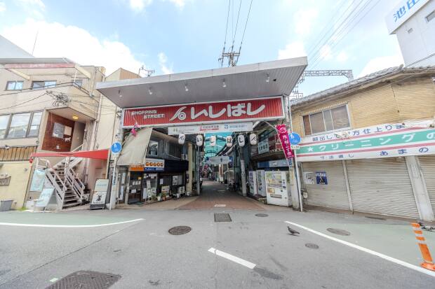 「石橋阪大前」駅西口から続く、様々なお店が軒を連ねる商店街。アーケードが設置された通りもあるので、天候を気にせずゆったりとお買い物を楽しめます。