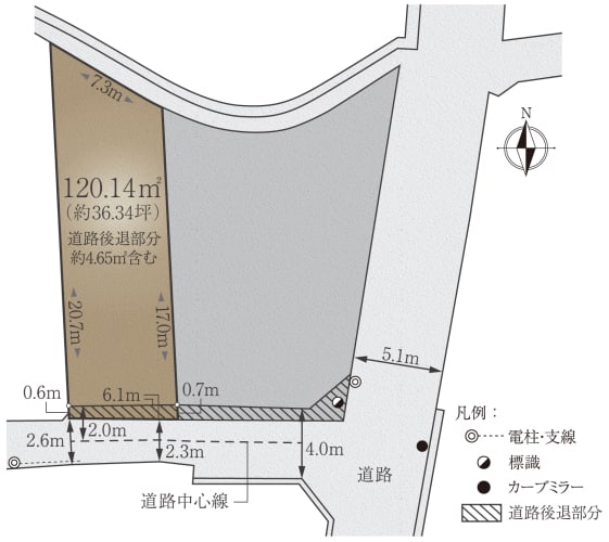 敷地面積は約36.34坪(道路後退部分約4.65㎡含む)。2階リビングや収納豊富な間取りなど、ご家族のライフスタイルに合わせた住まいづくりが可能です。/2026年1月撮影