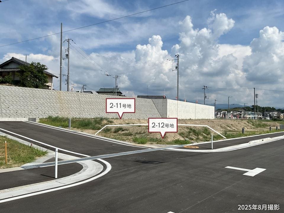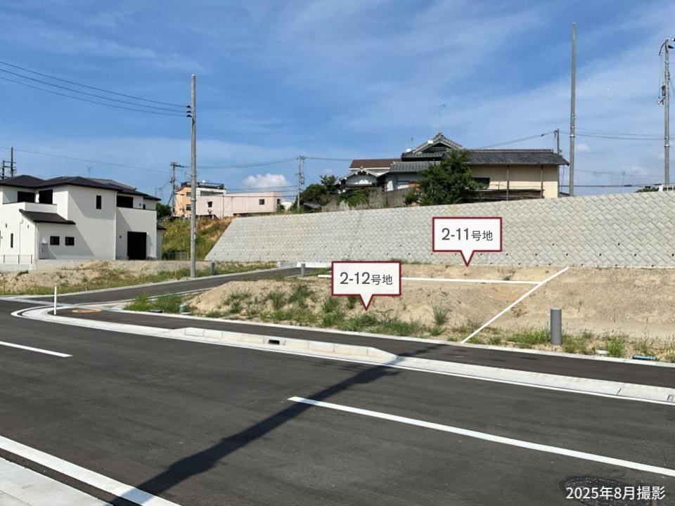 2-11号地は約38.03坪。2-12号地より高い位置に建物が建つため、高低差を活かした開放的な空間を配置しやすく、ゆとりある暮らしを叶えることができそうです。/2025年8月撮影