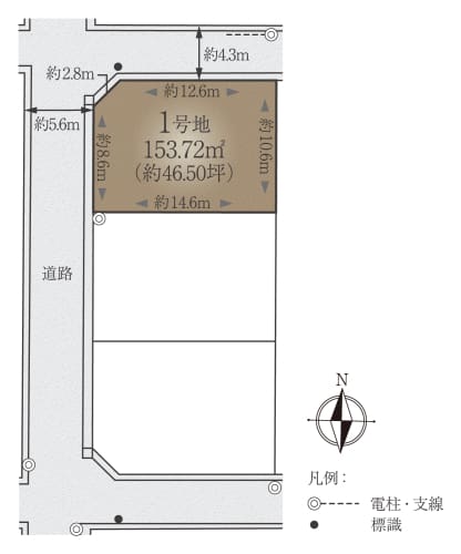 敷地面積は約46.50坪。庭や2台分の駐車スペースもご検討いただける広さです。