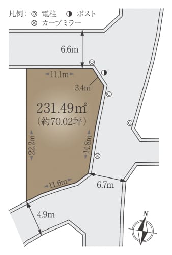3方が道路に面した開放的な角地。敷地面積は約70.02坪とゆとりがあります。ご家族のライフスタイルに寄り添う、唯一無二の我が家をご提案いたします。/2025年8月撮影