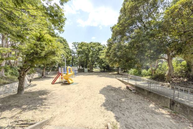ボール遊びが楽しめる平坦な広場や複合遊具があり、お子様がたっぷり体を動かして遊べる公園。大きな木々に囲まれて、木陰でゆったりとした時間を過ごせそうです。