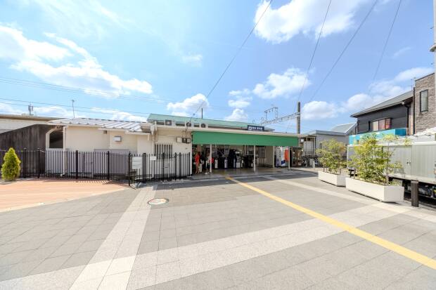 「大阪梅田」駅へ乗車25~26分でアクセス。駅はバリアフリー対応で、ベビーカーやキャリーバッグの利用もスムーズです。近くに駐輪場もあり自転車利用も検討できます。