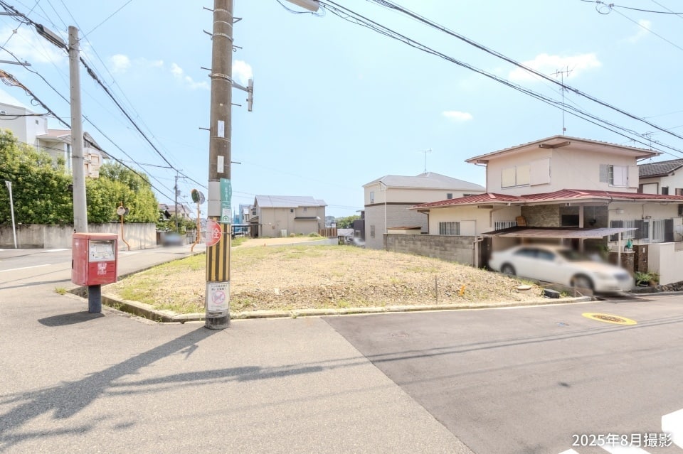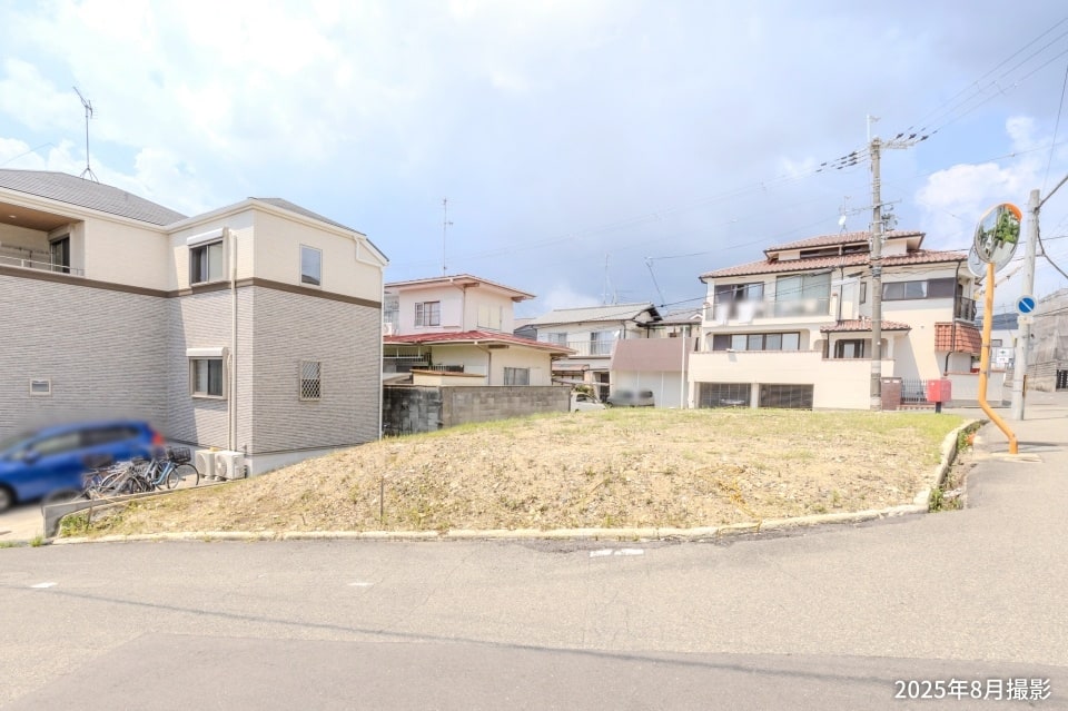 3方が道路に面した開放的な角地。敷地面積は約70.02坪とゆとりがあります。ご家族のライフスタイルに寄り添う、唯一無二の我が家をご提案いたします。/2025年8月撮影