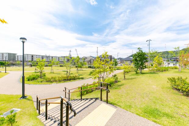 - JR京都線「島本」駅まで徒歩13~14分(約1040~1060m)。駅前は、JR島本駅西地区の土地区画整理事業によって、広場や緑道、公園が整備されています。