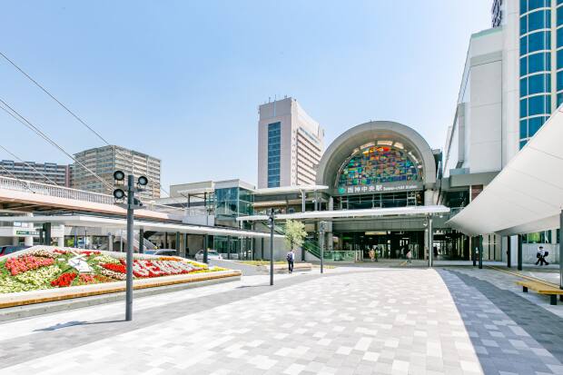 座って通勤・通学しやすい始発駅。「リノベーション・神戸」プロジェクトの一環で再整備が進められており、更なる利便性向上が期待できます。