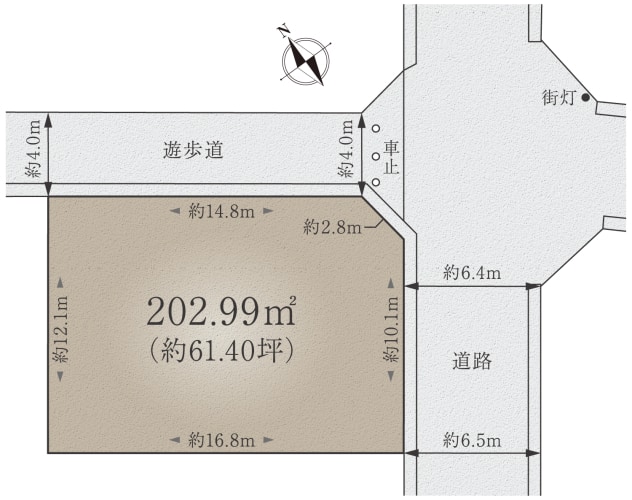 2方向に開けた、ゆとりある敷地を販売中。形が整っているため、土地全体を有効活用できます。