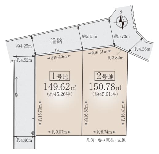 45坪超のゆとりある敷地。2台分の駐車スペースやお庭もご検討いただける広さです。