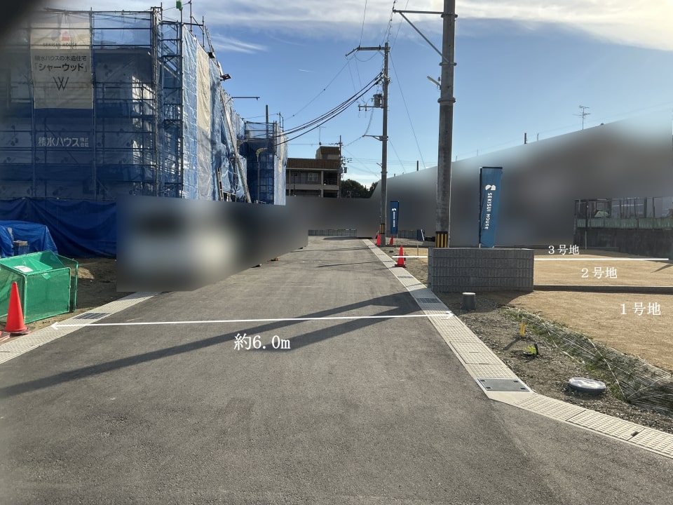 分譲地北側道路を西側から東側に向かって望む。(2025年12月撮影)