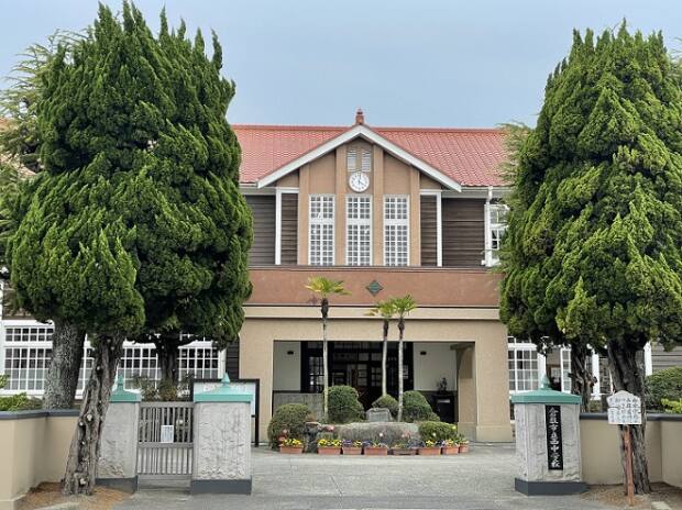 木造校舎が特徴的な、岡山県でも有数の大規模校です。