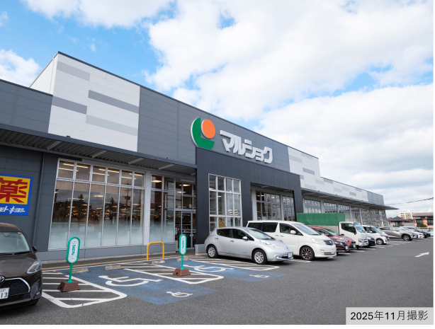 営業時間は9:00~21:30。100円ショップやドラッグストア、クリーニング店などの専門店も入っています。駐車場は121台完備しています。2025年11月撮影