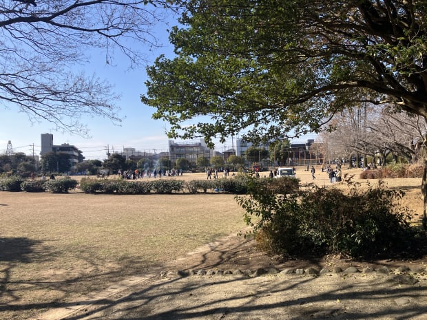 芝生広場や遊具、テニスコート、幼児専用の遊び場が整う公園。外周は1周640mのウォーキングコースになっており、子どもから大人まで安心して過ごせる憩いの場です。
