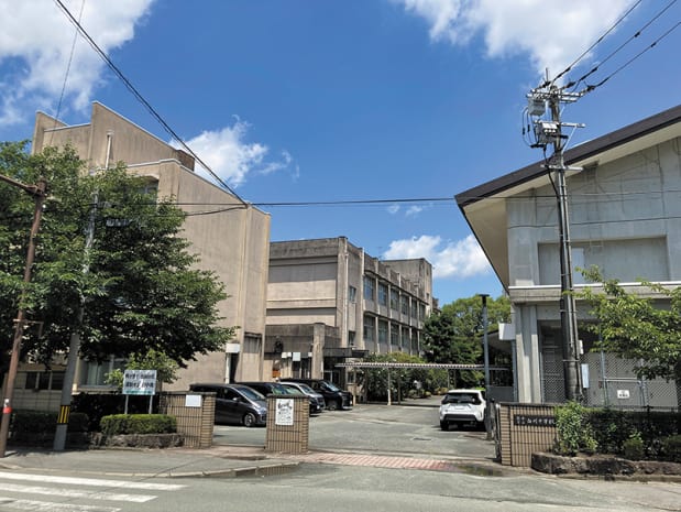 昭和22年創立の中学校。基礎学力向上の他、タブレット・ICT機器を活用した授業や探究学習など様々な学習方法を取り入れ、高い進路実績を誇ります。