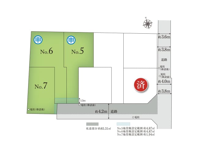 分譲地の東側道路は一方通行であり、南側からは通り抜けができなくなっております。