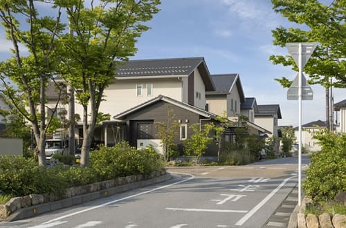 開発前からあった既存の樹木を公園や街路樹として生かし、自然生態系の保全に取り組み、新たに植える樹木も在来種を積極的に採用しました。地域のシンボルとなっている彦根城とその歴史あるまちなみに配慮して、団地入口や幹線道路沿いには趣のある石積みを設けるなど、地域に調和したまちづくりにも取り組んでいます。
