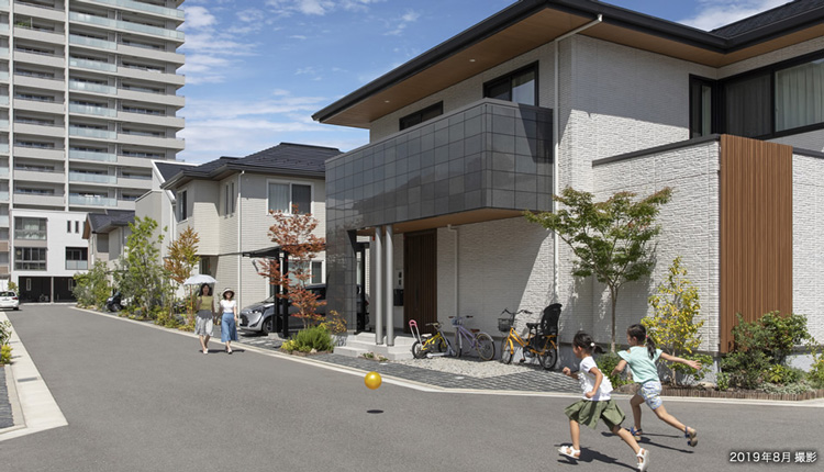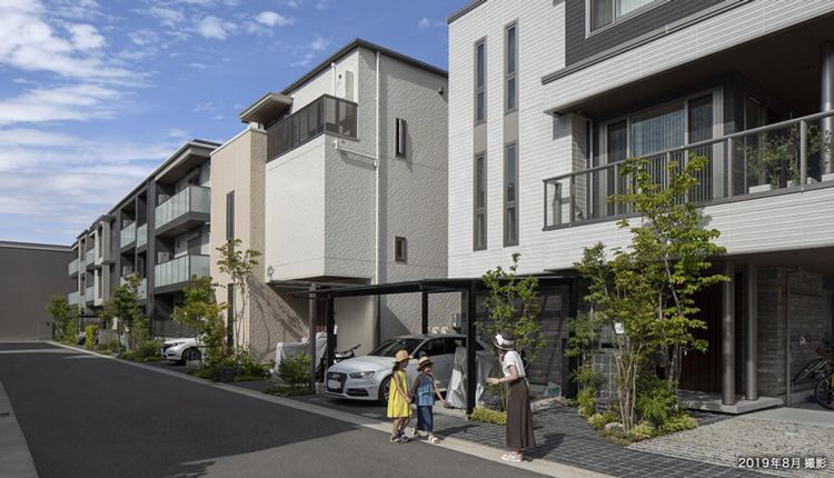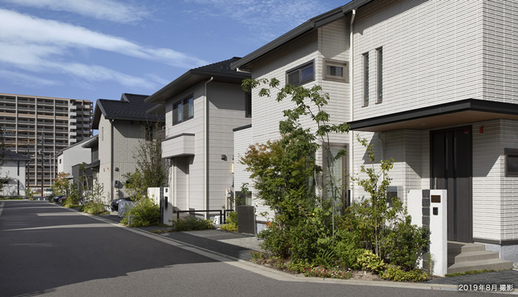 豊かな緑が感じられる植栽計画や、境界部のフレームにより、統一感のある通り景観と、上質な暮らしをイメージさせるまちなみを実現しています。